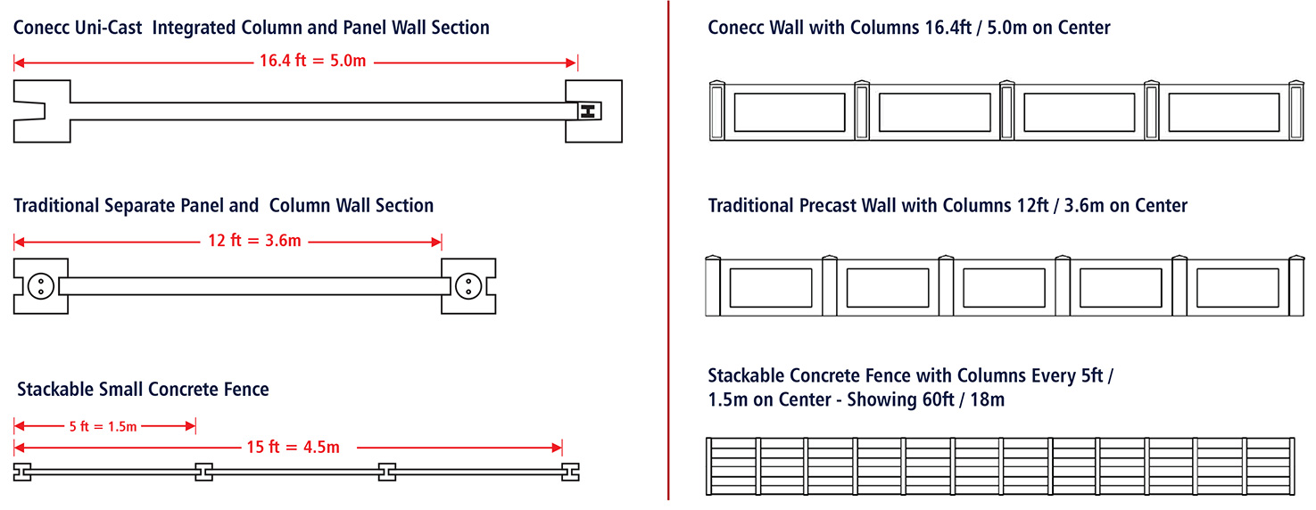 Greencast one piece panel / column construction takes less than half the time to install when compared to traditional two pieces and stackable panel and columns system. Static Footing support gives the walls greater stability during the fence installation process, which increases the safety and aligns the wall during the construction. This increases the overall strength of the installation.